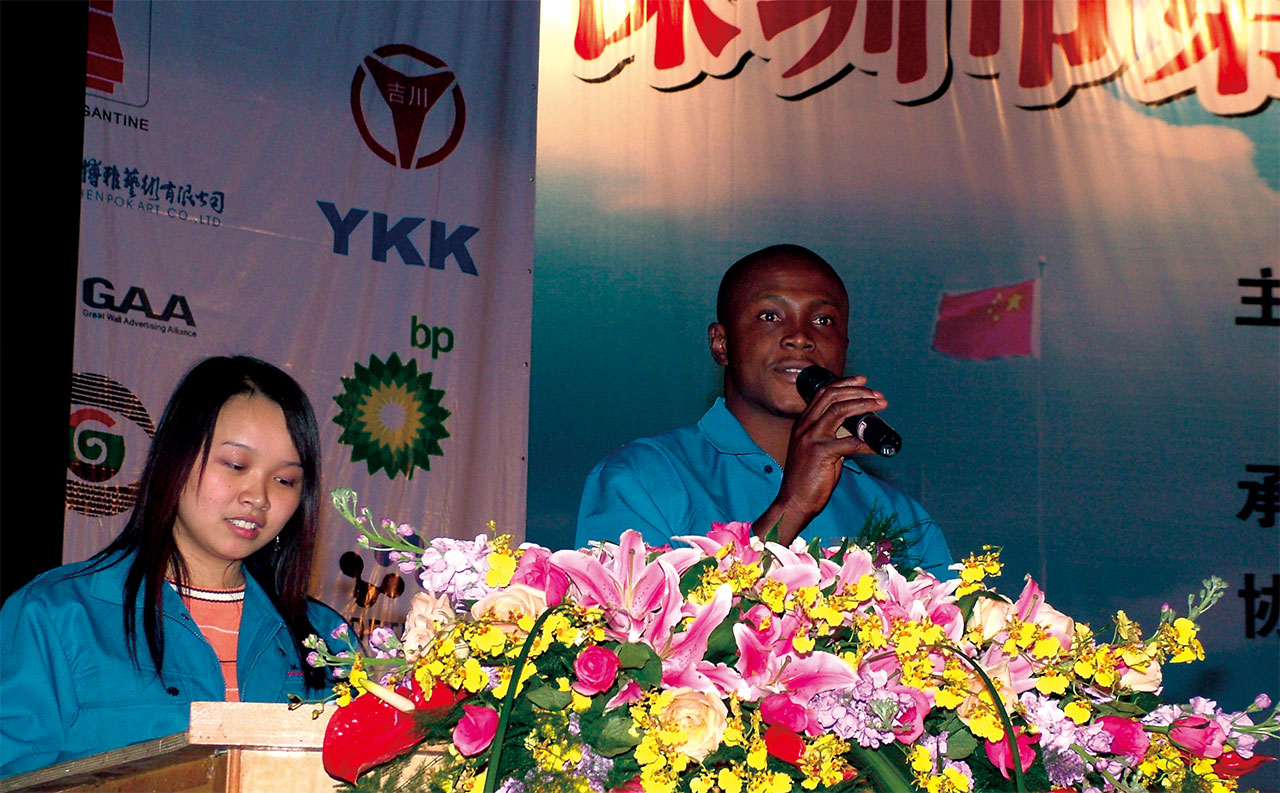 美固电子外籍工程师依玛(右)代表运动员在闭幕式上发言